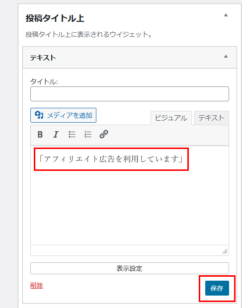 ステマ規制の文言はウィジェットに入れればOK
